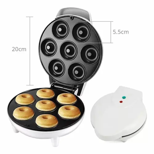 Nuestra máquina para hacer mini donas te permite preparar 7 donas calientes y frescas en cuestión de minutos. Olvídate de la grasa y el desorden de freír, con nuestra máquina podrás disfrutar de donas horneadas, más ligeras y saludables. ¡La diversión está asegurada!